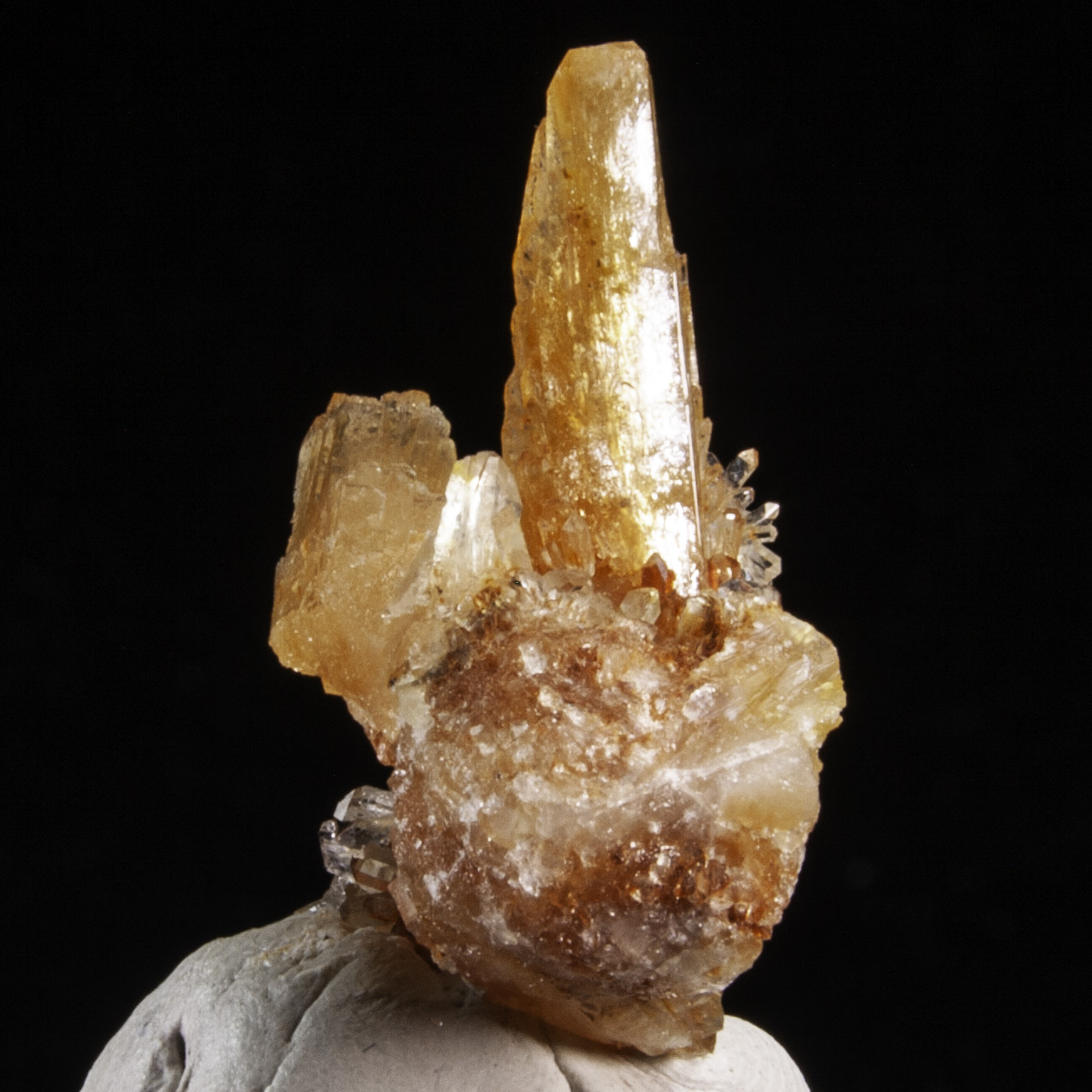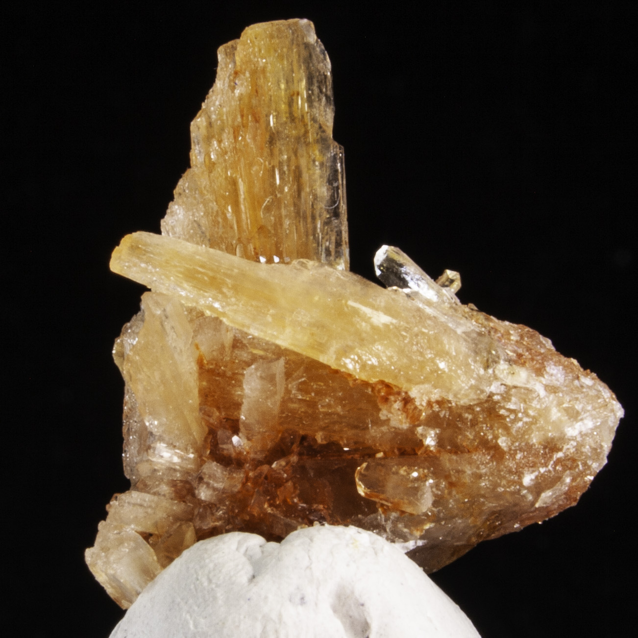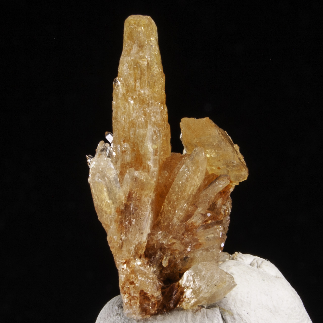 Mineral Description: A small spray of orange creedite crystals. Terminated. Height: 3 Width: 2.7 Depth: 1.1 cm