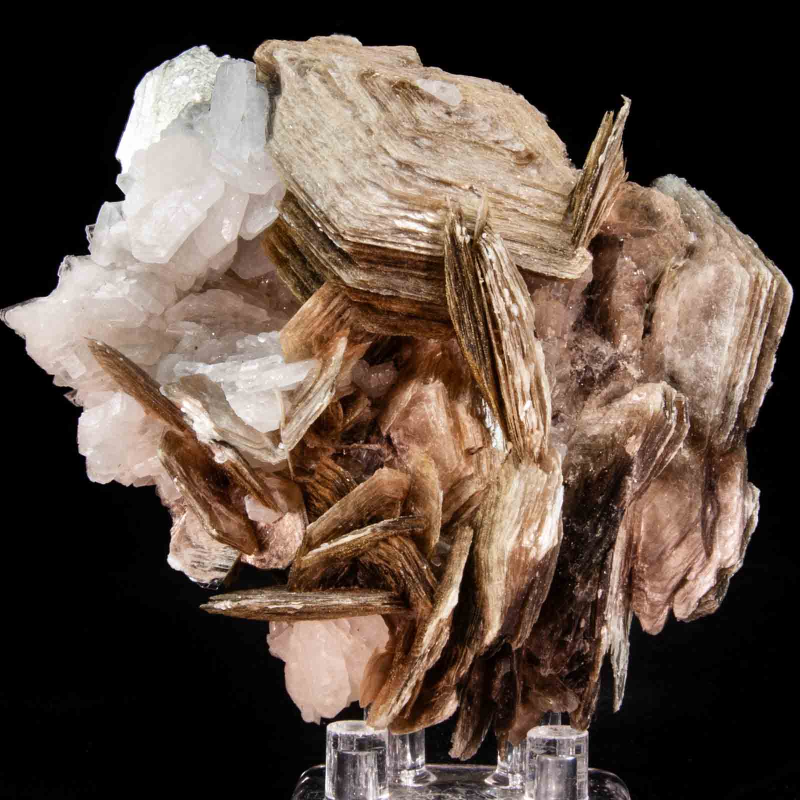 Mineral Description: A cluster of silvery muscovite books mixed with bladed albite crystals. Much better than the photo. Height: 8.5 Width: 7 Depth: 3 cm