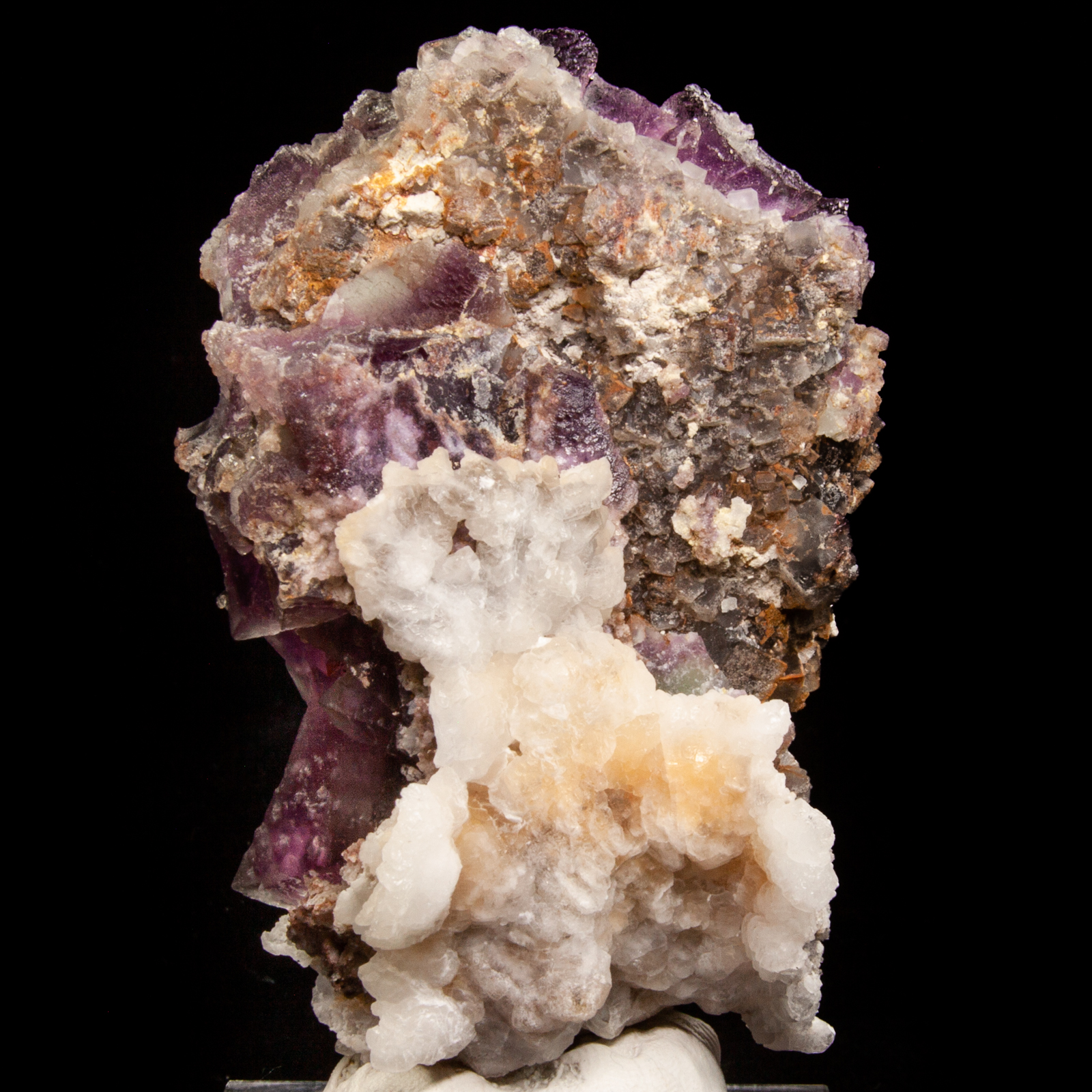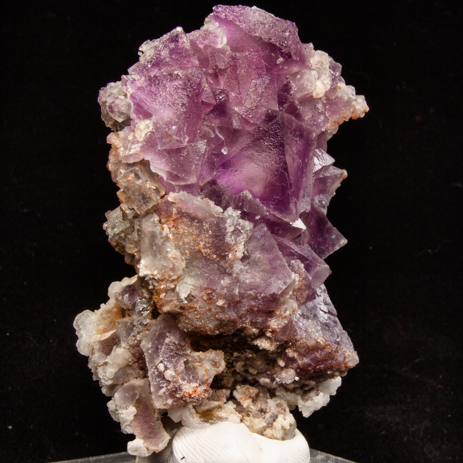 Locality: A quartz-covered matrix with several dozen gemmy purple fluorite crystals scattered about. The fluorites have modified faces.Add to WishlistAdd to Wishlist -