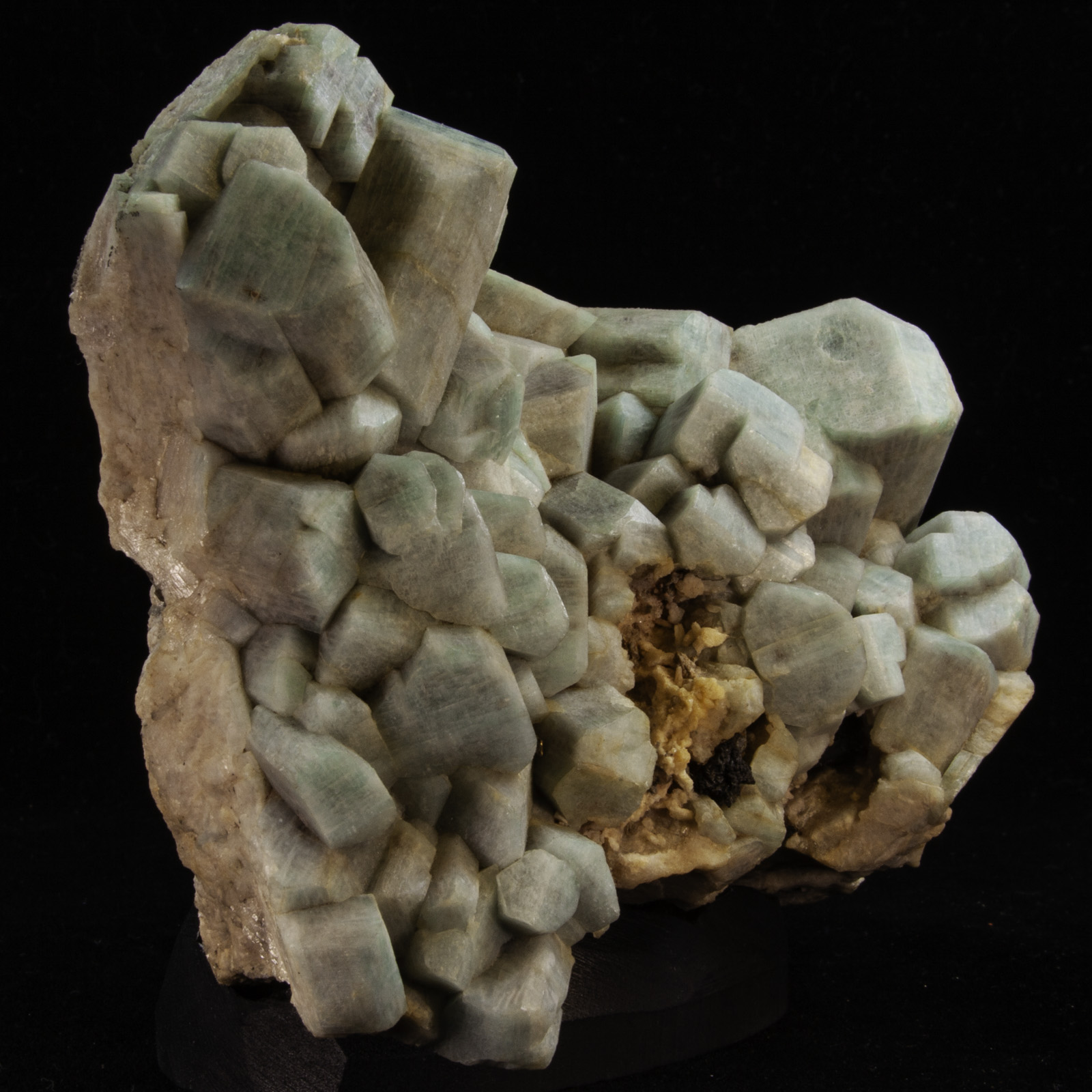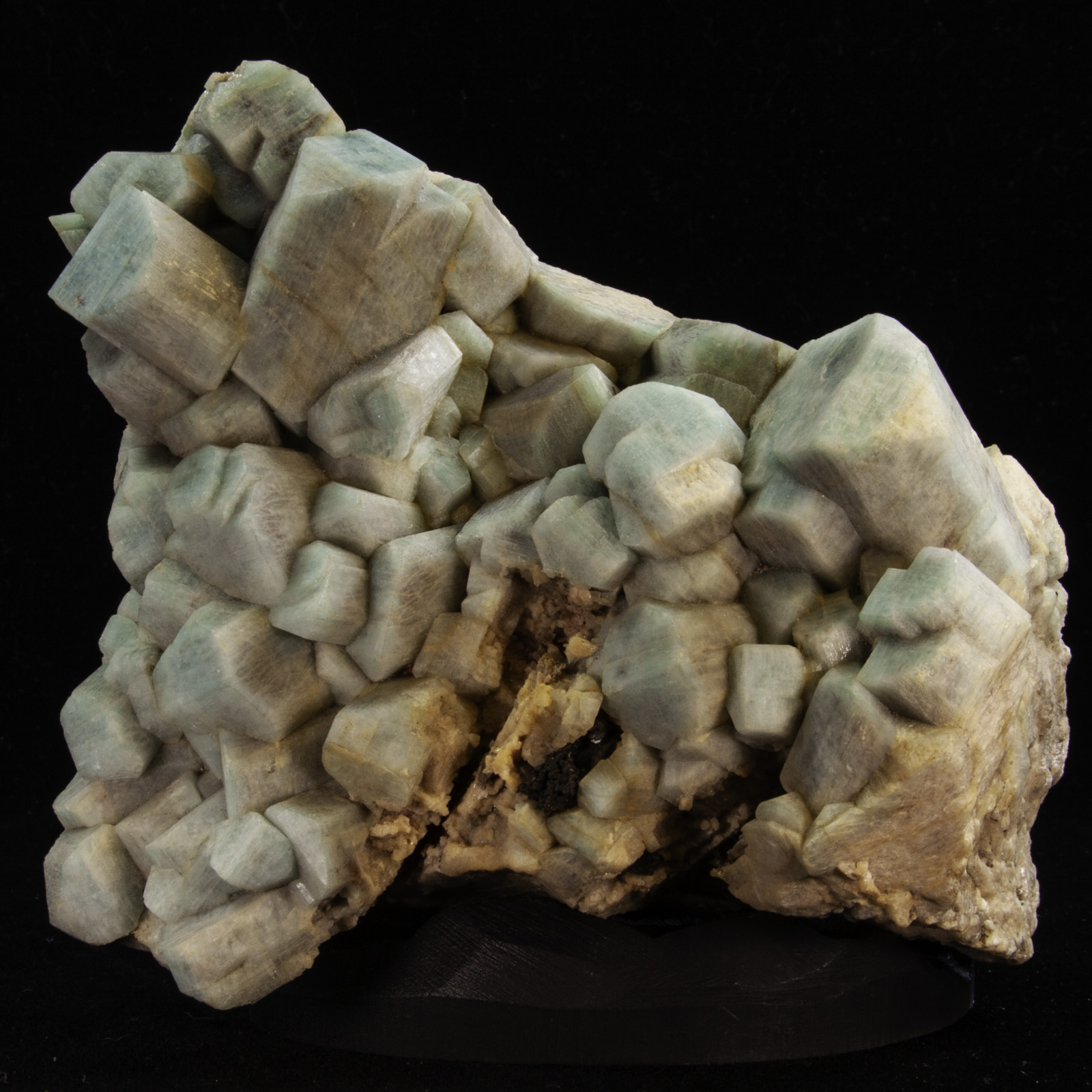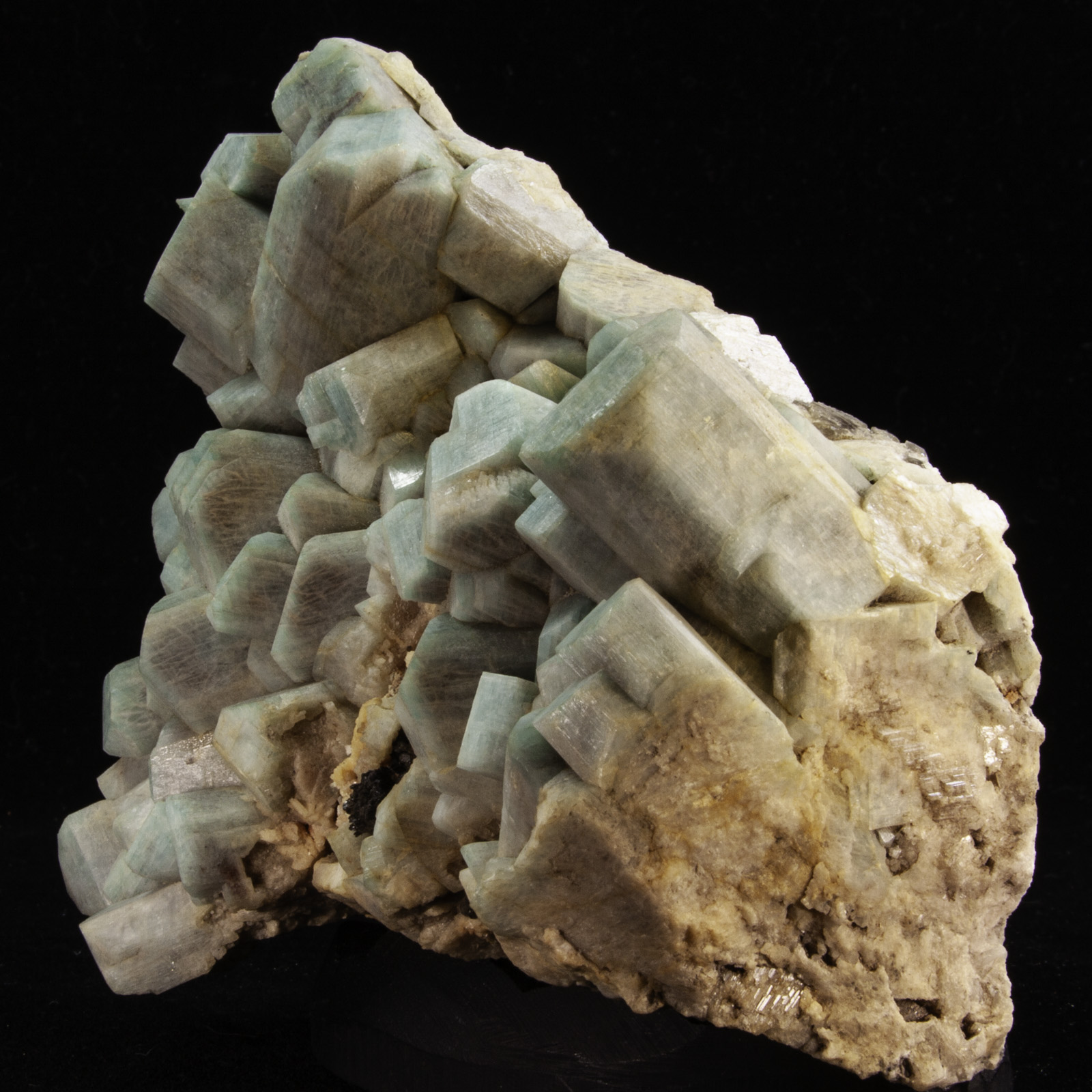 Mineral Description: This specimen is a very nice light bluish green group of amazonite crystal forming a cluster. Minor smoky quartz. Excellent condition. From the collection of Carolyn Reynard. Height: 11.5 Width: 8 Depth: 4.8 cm