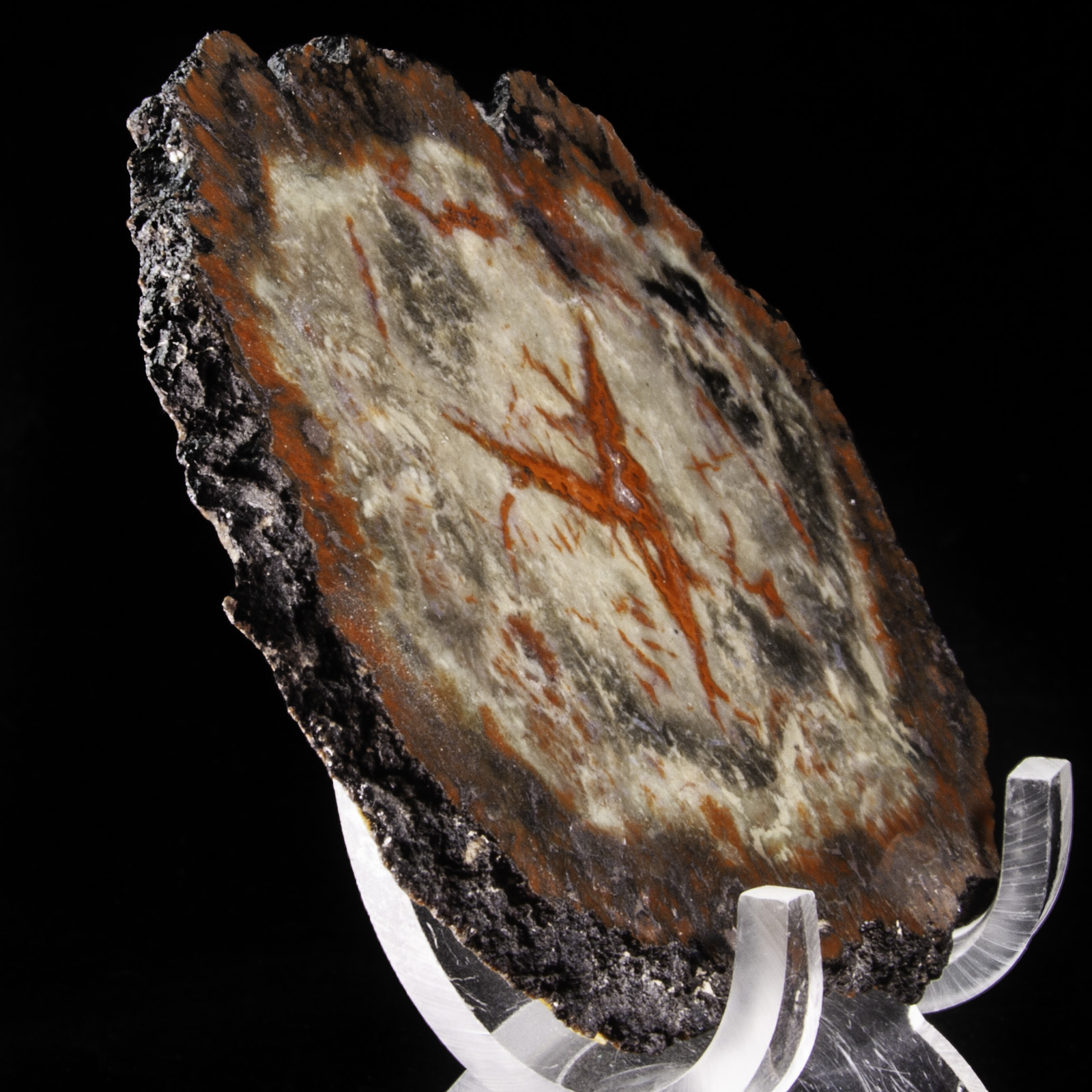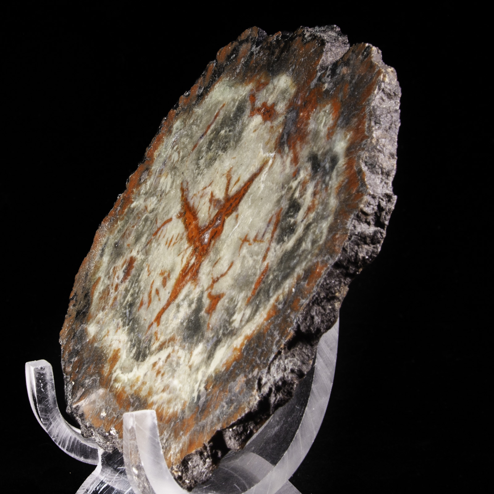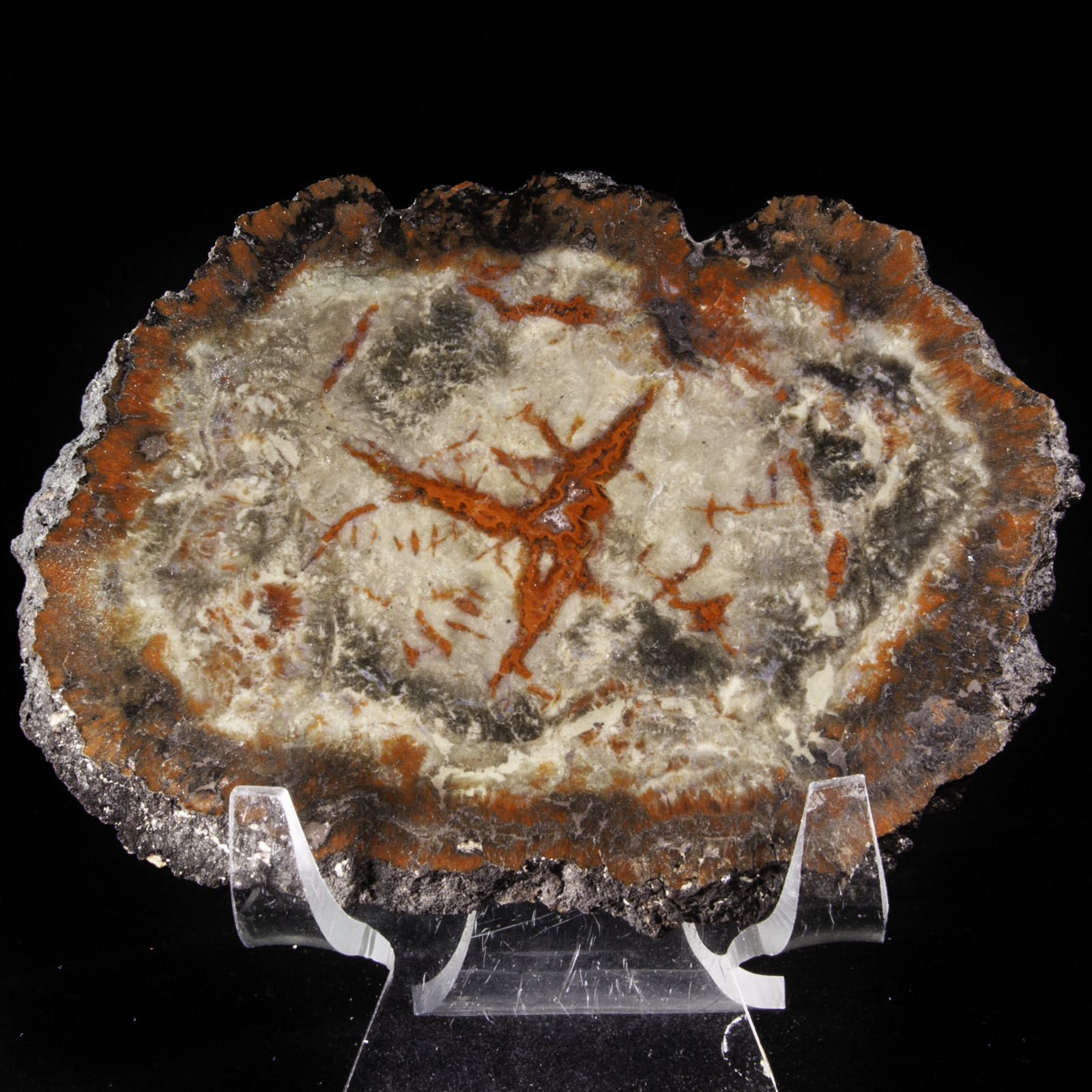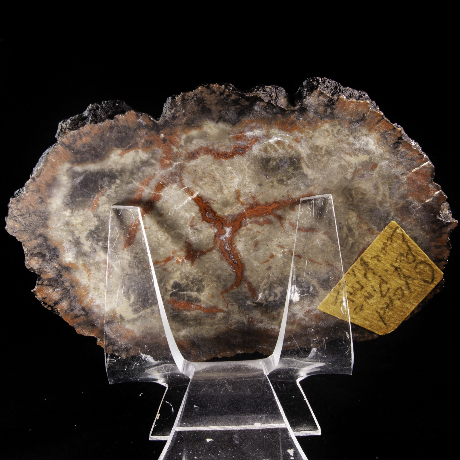 Mineral Description: A slice through a petrified cycad limb. Polished on one side. Height: 9.6 Width: 7 Depth: 0.3 cm