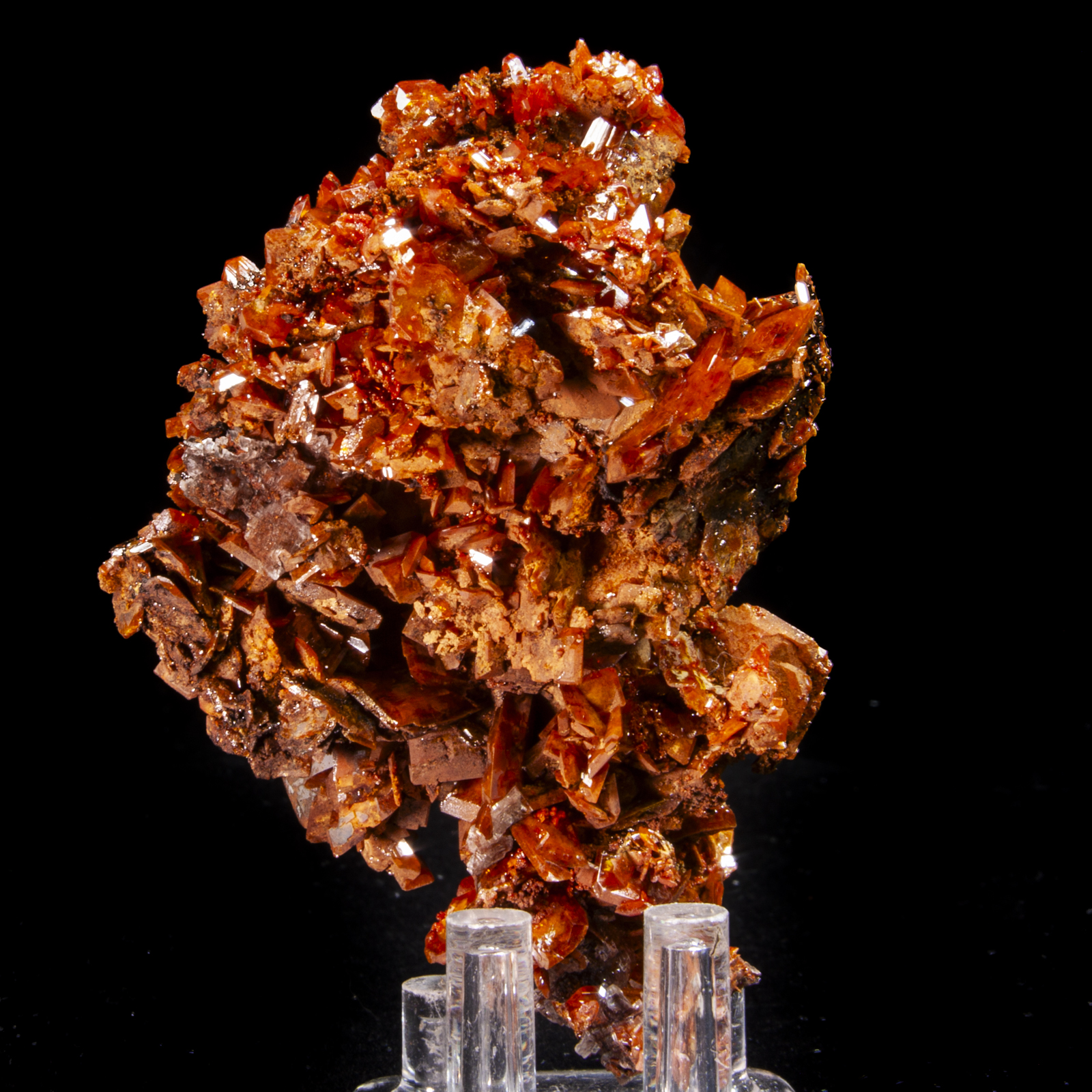 Mineral Description: Many dozens of lustrous orange-red wulfenite crystals on matrix. The largest crystal is 1 cm wide. Excellent condition. Height: 8 Width: 5.5 Depth: 3.7 cm